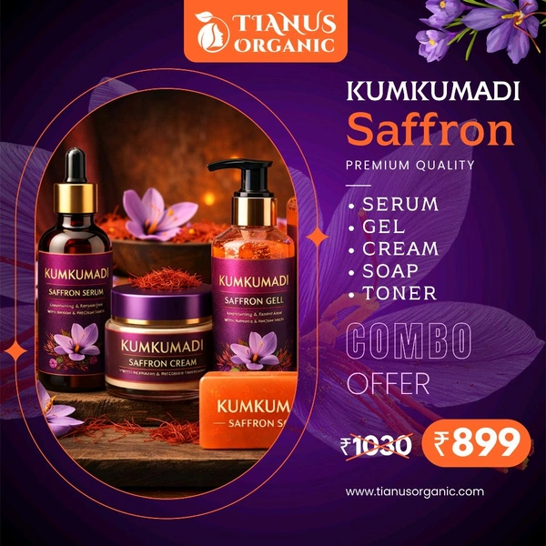 Don’t wait to experience the wonders of Ayurvedic skincare. Elevate your beauty ritual with the Kumkumadi Saffron Combo from Tianus Organic. Your journey to radiant, glowing skin begins here.