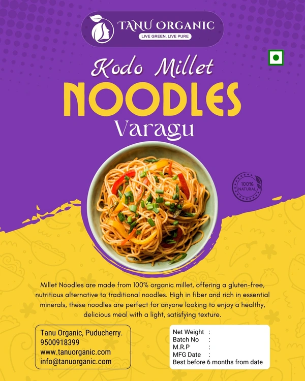Step into the world of healthy eating with Noodles - Kodo Millet (Varagu) from Tanu Organic. These noodles provide a nutritious alternative to your regular meals, combining the ancient goodness of kodo millet with the modern convenience of easy cooking. Ideal for health enthusiasts and culinary explorers alike, our Kodo Millet Noodles promise not only to nourish but also to delight your taste buds.